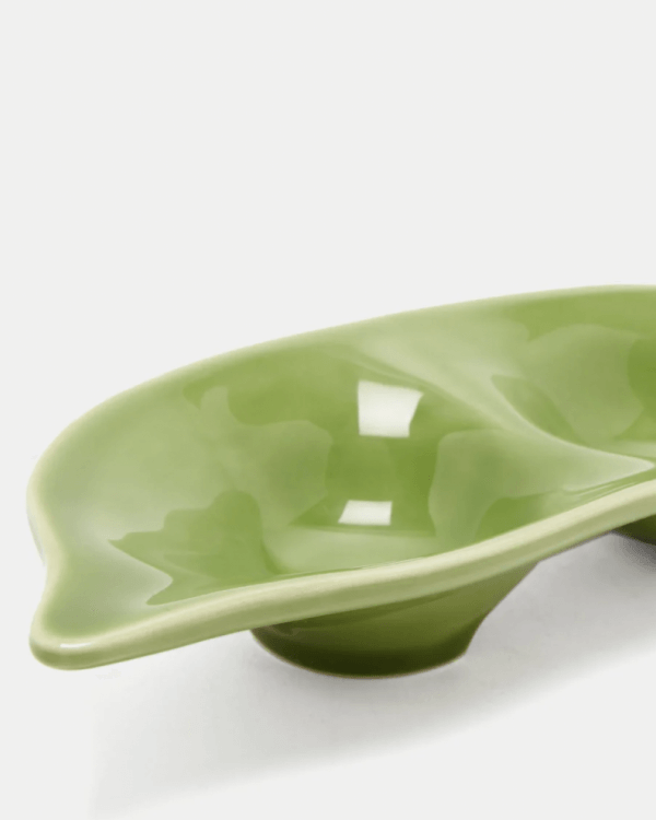 The Peapod platter is an example of Bordallo Pinheiro's cheerful earthenware legacy. Made in Portugal from glazed ceramic and included in the label's Spring Tables collection, it has rounded compartments suited to fit a selection of appetisers in a visually engaging manner. Fill it with nuts, olives or dips.