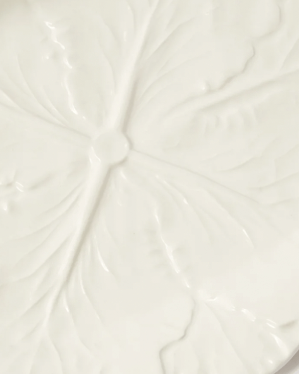 Bordallo Pinheiro ceramic platters imported from Portugal. Bordallo’s pieces imitate natural forms and have been much copied throughout the twentieth century. 2 white cabbage platters available - hired only as a set with all other platters.